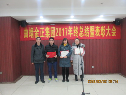2018年2月2日上午,曲靖金正集團(tuán)2017年終總結(jié)暨表彰大會(huì)在公司辦公樓大會(huì)議室順利召開(kāi)。大會(huì)全面總結(jié)了曲靖金正集團(tuán)在2017年度的工作情況,并分析了各部門(mén)工作中存在的問(wèn)題,同時(shí)明確了集團(tuán)下一年度的工作方向和重點(diǎn),對(duì)各公司評(píng)選出的先進(jìn)員工以及通過(guò)房地產(chǎn)估價(jià)師、資產(chǎn)評(píng)估師、房地產(chǎn)經(jīng)紀(jì)人協(xié)理執(zhí)業(yè)資格考試的員工進(jìn)行隆重表彰。最后,在公司王總的監(jiān)督和見(jiàn)證下,各部順利完成2018年度目標(biāo)責(zé)任書(shū)的簽訂。